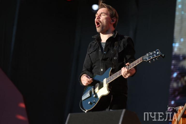 Гитаристу Фёдору Досумову южноуральская погода показалась настолько жаркой, что он выступал в футболке
