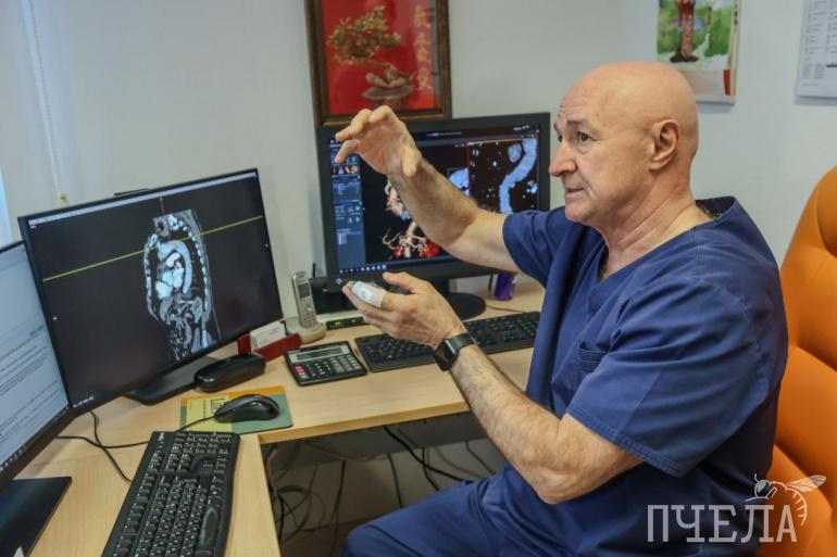 — Мы заменили начальный участок (восходящий отдел), который идёт к шее, а также область изгиба у основания шеи (дуга аорты, от которой отходят сосуды кровоснабжающие головной мозг и верхние конечности) протезом с одномоментным протезированием ветвей аорты, — объяснил сердечно-сосудистый хирург, заведующий КХО№ 2 Челябинского кардиоцентра Владислав Аминов. — В нисходящий отдел аорты, который идёт вдоль позвоночника, опустили стенграфт — специальное изделие, которое представляет собой трубку из мелких проволочек, обшитую специальной тканью. В свёрнутом состоянии она опускается в аорту и там раскрывается, за счёт своей механической прочности прижимает расслоившийся участок и расширяет истинный просвет сосуда.