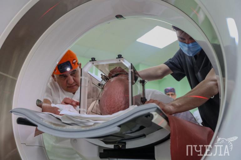 — Надевается рама на голову пациента, выполняется КТ. Эти координаты, полученные заранее, совмещаются с программой, и производится планирование самой операции. Оно виртуальное, компьютерное, цифровое, поэтому операция очень высокотехнологичная, — рассказал главный врач ФГБУ «Федеральный центр нейрохирургии» Минздрава РФ (г. Тюмень) Альберт Суфианов.