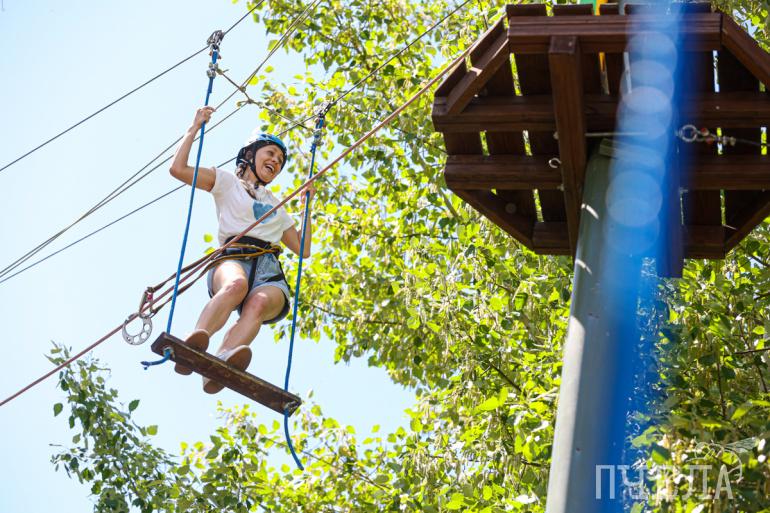 А самые смелые участники от каждой команды проходили верёвочную трассу