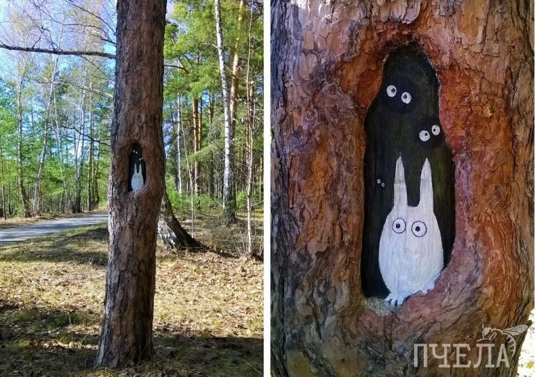 Гуляя по городскому сосновому бору или в парке Гагарина, можно случайно наткнуться на будто «живые» рисунки на участках коры деревьев, где мороз «вырезал» окошки — «морозобоины». Необычных жителей там «поселила» кистью и красками челябинка Виктория Мелер, творящая под псевдонимом Mira Clart.
