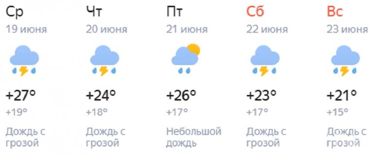 Во вторник, 18 июня, теплее всего окажется на юге области — до +32, на остальной территории тоже будет жарко, но столбики уличных термометров поднимутся только до +24…+29. При грозах порывы ветра восточной четверти будут достигать 17 метров в секунду. По ночам ожидается +13…+20. Днём в среду воздух прогреется до +28…+33, в четверг — до +23…+28.