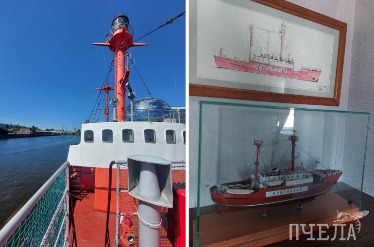 Ещё на территории музея пришвартован ярко-красный плавучий маяк «Ирбенский». Маяк — это святыня морей и друг моряков, и здесь можно узнать историю их создания и развития в нашей стране.