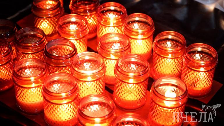 На площадке расстелили плакат «Урал — фронту», созданный в 1942-м году художником Петром Караченцовым. Его подсветили около двух тысяч свечей, которые в вечернем сумраке ярко озарили изображение.
