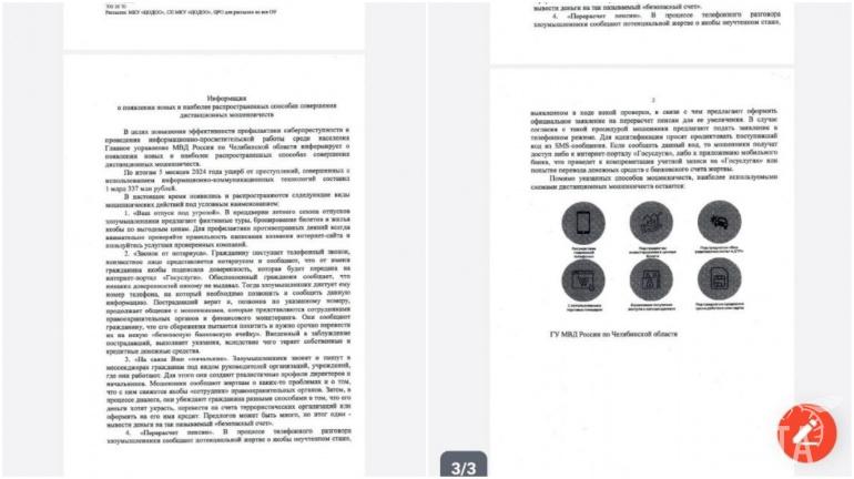 — Добрый день, уважаемые родители. Данный документ разослан по школам для ознакомления сотрудников и родителей, — написали в чатах родителей учеников лице № 96 в Челябинске. — Он предупреждает о новых видах мошенничества. Будьте бдительны и ознакомьте своих пожилых родственников.