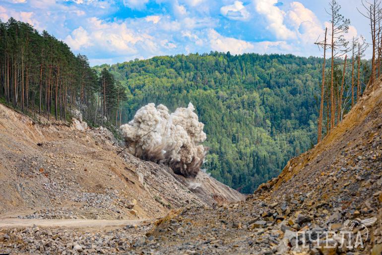 Работа дорожного рабочего непроста, ведь при возведении различных объектов приходится сталкиваться со сложностями, без которых не обошлось и при строительстве Симской эстакады. В связи с тем, что оно ведётся среди скал с уклонами больше 60 градусов, технике было тяжело проходить на начальных этапах, поэтому горы приходится взрывать. И нашему корреспонденту удалось своими глазами увидеть, как ведутся взрывные работы.