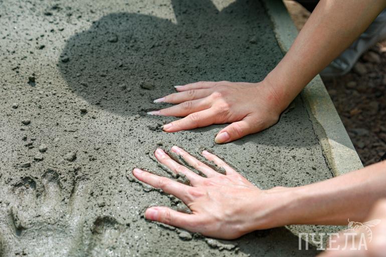 Корреспондент «Пчелы», как и другие челябинские журналисты, в буквальном смысле оставила свой след в строительстве объекта и приложила ладонь на бетон, который будет использоваться для колонн Симской эстакады.