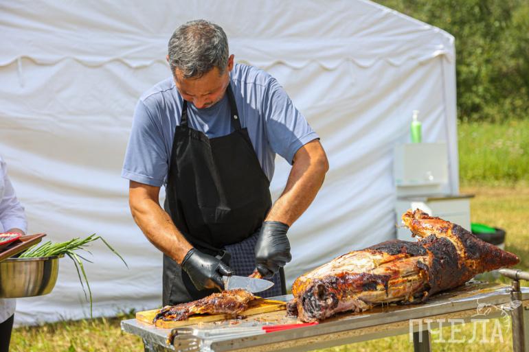 Чтобы у дорожного рабочего были силы делать свою непростую работу, необходимо хорошо питаться, поэтому журналисты отправились обедать с живописным видом на леса, горы и реки Сим.