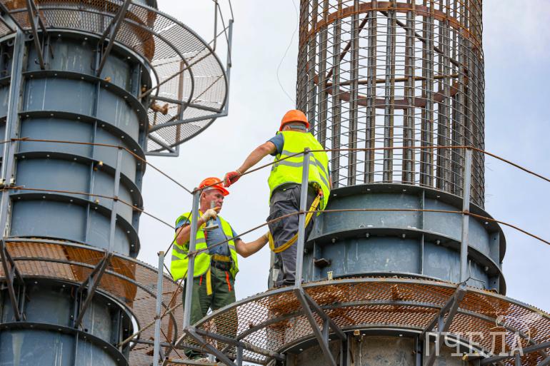 — С помощью специальных установок выполняется бурение скважины. В неё опускают каркас и трубу, по которой поступает бетон. Как только он обретает определённую прочность, откапывается котлован, а сваи срубаются по проектную метку, — рассказал об этапах строительства фундамента для эстакады руководитель проекта строительства искусственных сооружений Артур Гиревой. — После этого устанавливается опалубка, в которой делается арматурный каркас и заливается бетон.