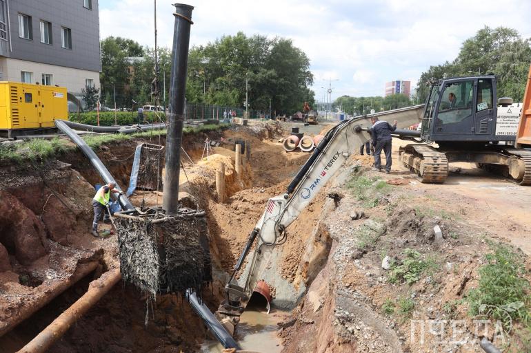 А на втором — от улицы Героев Танкограда до улицы 40-летия Октября — идёт замена ещё одного трубопровода системы водоотведения.