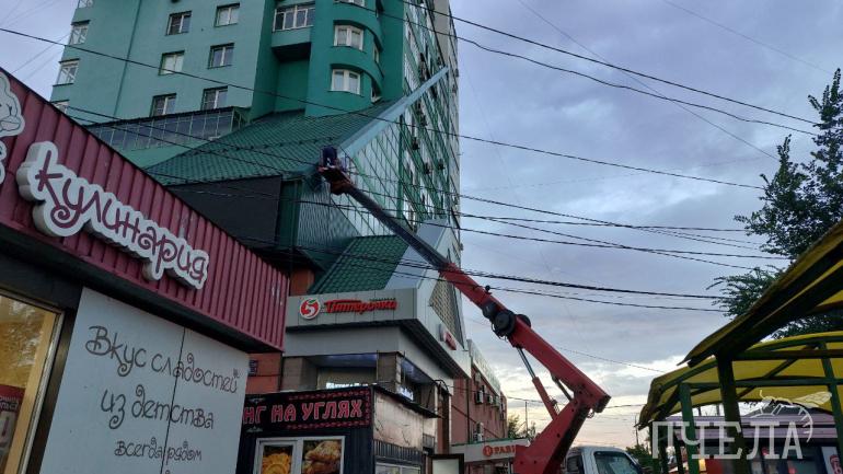 Крышу над пристроем дома № 32 на Молодогвардейцев починили часа через 3,5 после урагана. Фото: Мария Давыдова
