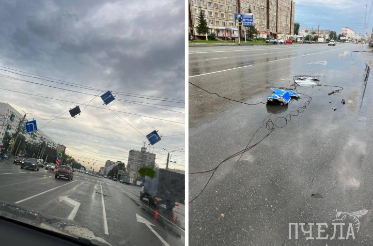 Порывами ветра повалило светофоры и дорожные знаки. Фото: Колян Анцупов/Нетипичный Челябинск/Vk.com