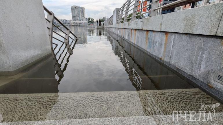 Спуск к воде затопило практически полностью