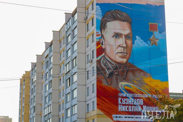 Фасад дома № 3а на улице Кузнецова в Советском районе Челябинска в октябре 2022 года украсили изображением Героя Советского Союза Николая Кузнецова, который родился на Урале. Под именем немецкого разведчика он узнавал информацию и передавал её в партизанский отряд. Помимо портрета на граффити написано азбукой Морзе слово «Подвиг».