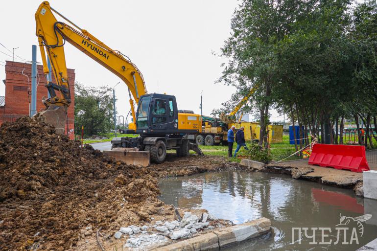 Провал железобетонного коллектора, который собирает 35% вод Тракторозаводского района, произошёл на пересечении улиц Котина и Культуры. Сейчас там идут работы на 68 метрах труб, а в целом требуется ремонт 1280 метров.