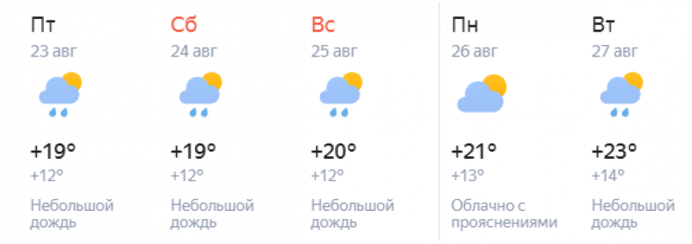 Похоже, такая погода с нами надолго, и всё же к выходным ситуация чуточку улучшится. Судя по прогнозу «Яндекс. Погоды», будет на пару градусов теплее.