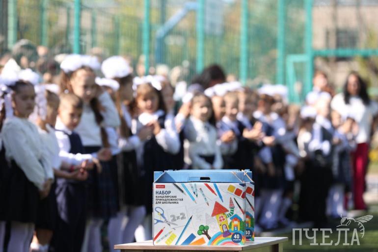 Детям вручили наборы канцелярских принадлежностей для школьника