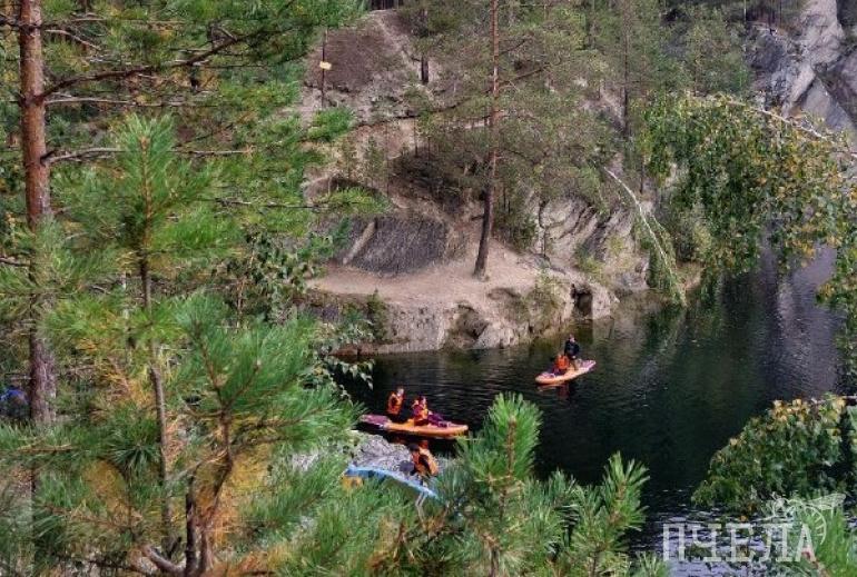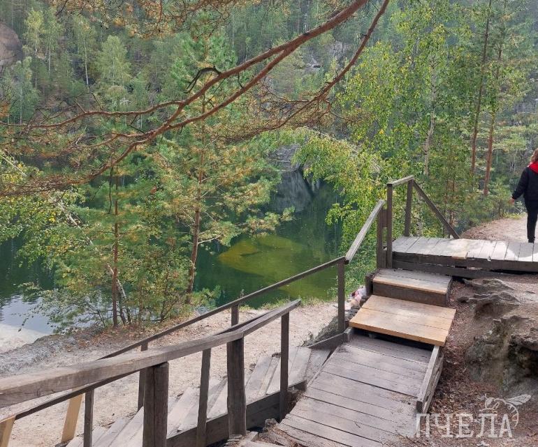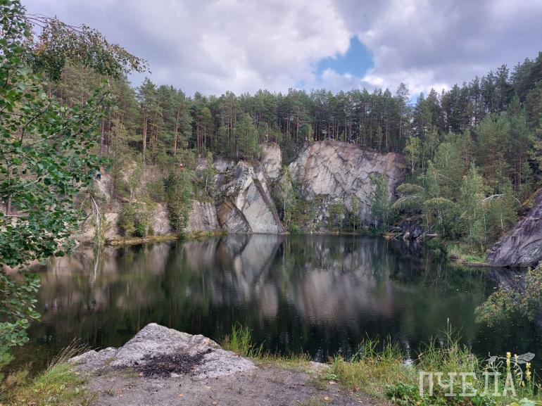 Карьер окружён живописными скалами и лесом