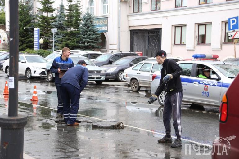 Сегодня, 14 августа, перекресток улиц Труда и Советской залило водой из канализационного колодца. Аварию устраняют.