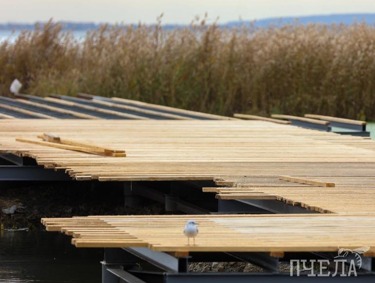Сейчас на набережной также строят мост, который позволит посетителям любоваться водной гладью. Однако горожане возмущены тем, что площадка строительства этого объекта не огорожена, что представляет опасность. Это проверила и оператор «Пчелы», которая встала на доски, чтобы запечатлеть вид для наших читателей и провалилась в холодную воду. С этим вопросом мы обратились к главе Ленинского района.