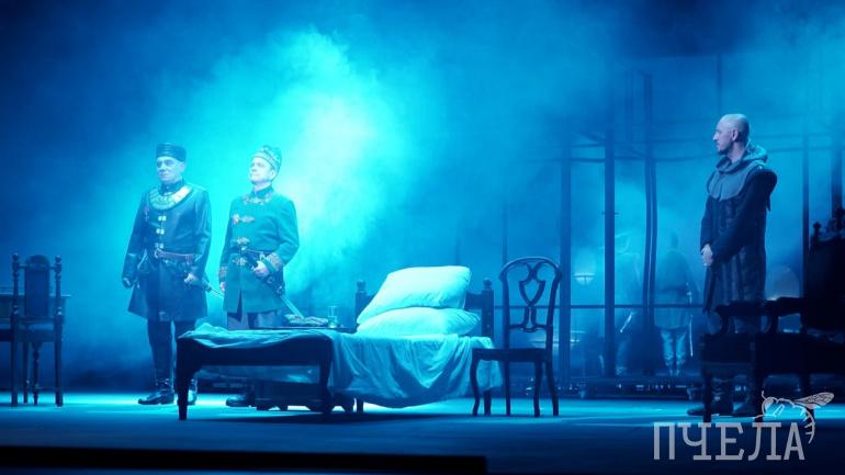 На новой сцене гостям показали спектакль «Король Лир» по пьесе известного английского драматурга Уильяма Шекспира. Над ней работала режиссёр из Москвы Екатерина Половцева. Главную роль в постановке классики исполнил народный артист России Борис Петров.