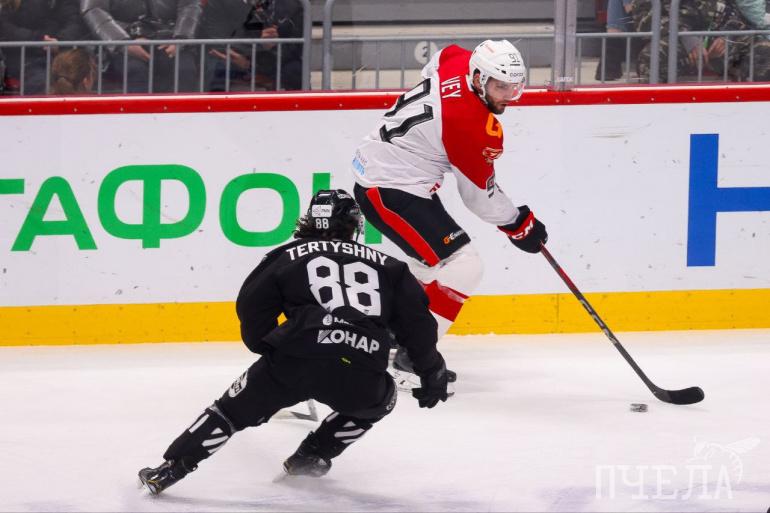 В первых двух периодах на льду получился схожий рисунок игры. Команды поочередно владели преимуществом, качественно ловя друг друга на затяжных сменах. Особенно это бросалось в глаза во втором отрезке на «дальней лавке». Равный хоккей отразился и на табло. В первом периоде в составе чёрно-белых отличился Никита Тертышный, а во втором форвард омичей Линден Вей сравнял счёт — 1:1.