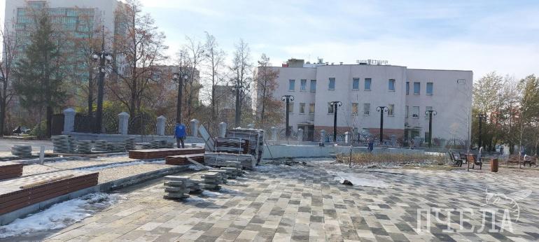 На северо-западе Челябинска завершают благоустройство сквера с «сухим» фонтаном