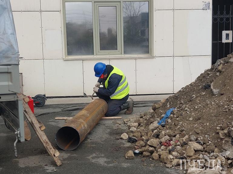 Здесь меняют часть старой трубы