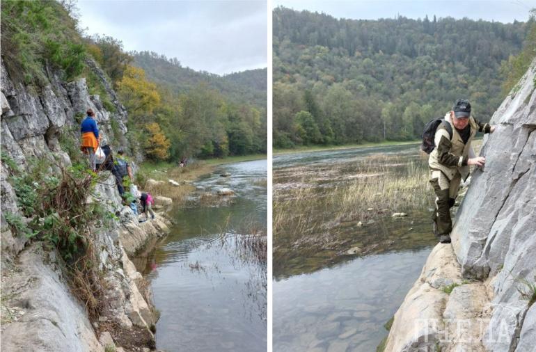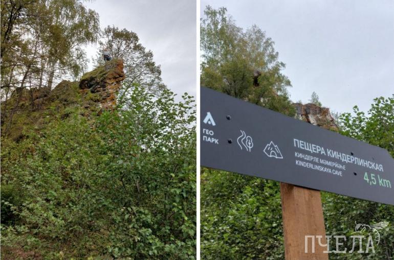 Потом будет Чистая скала, около которой можно сделать привал. Для этого есть и столы, и скамьи, и туалеты. Там же установлены увлекательные аншлаги. Прочитаете — и сразу захочется исследовать и другие пещеры. С этой точки до Киндерлинской пещеры — рукой подать.