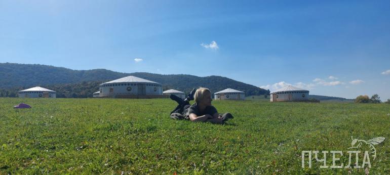 А рядом в виде цветка курая установлено несколько юрт, и от центрального к боковым проложены деревянные дорожки. Судя по всему, эти юрты используют только во время таких праздников, как Сабантуй. Как бы то ни было, они тоже становятся своеобразный бонусом поездки. Главное — выбрать интересный ракурс.
