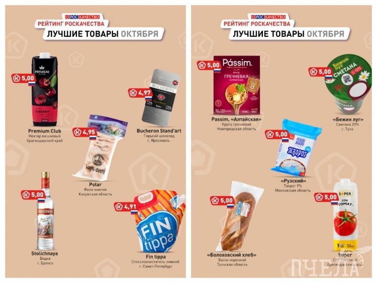 Эксперты Роскачества продолжают знакомить потребителей с товарами, которые были отмечены российским «Знаком качества». В октябре его получили продукты из разных категорий, в том числе водка, гречневая крупа, томатный сок, шоколад, творог и стеклоочиститель.