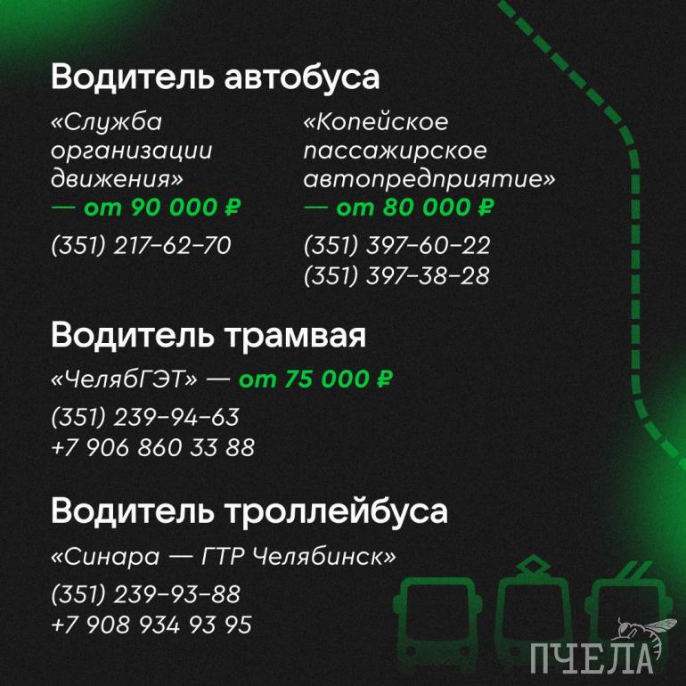 — Срочно! Челябинску не хватает водителей. Наладить работу общественного транспорта поможет набор кадров, — считают в администрации города. — Кандидатов обучат, будут платить стипендию пока идут курсы. А ещё работодатель гарантирует премии и мотивационные выплаты. Сейчас зарплата водителя автобуса, троллейбуса и трамвая превышает 80 тысяч рублей. Некоторые автопредприятия поднимут её до 105 тысяч.