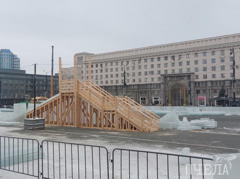 На площади Революции в Челябинске продолжается активное строительство ледового городка, дизайн которого вдохновлён книгой «Остров сокровищ».