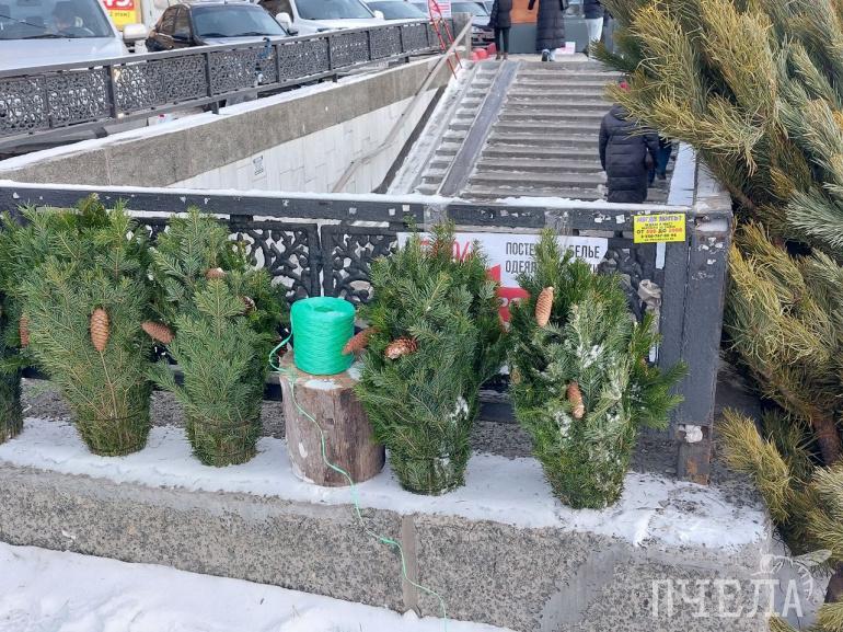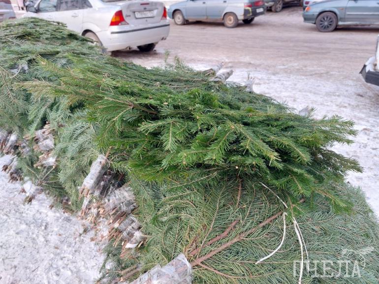 На базаре около Теплотехнического института ветки ели стоят 200 рублей, а цены на саму пушистую красавицу начинаются от 600 рублей.