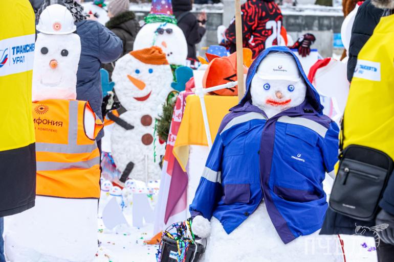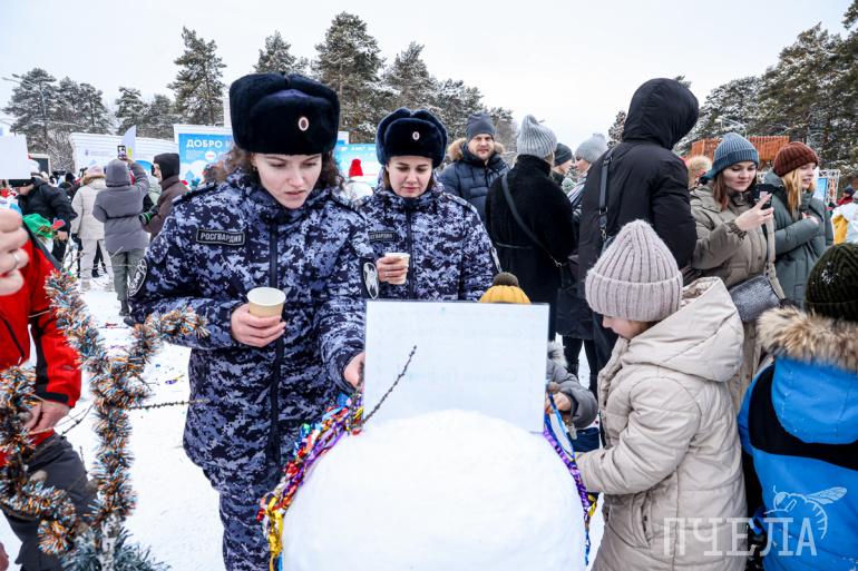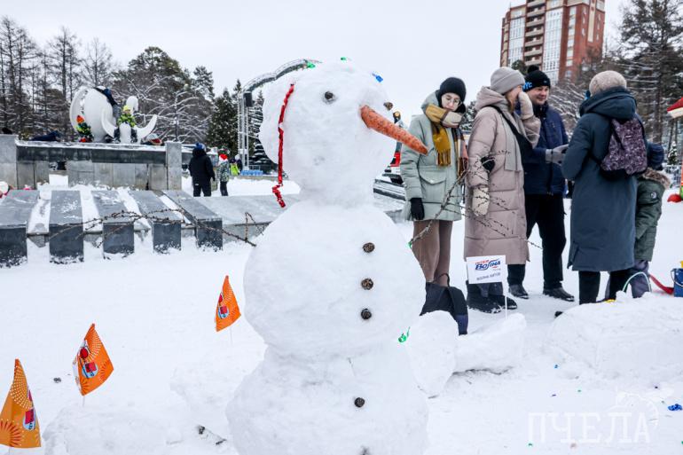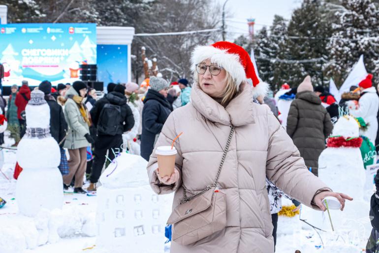 Зимний праздник традиционно провели в парке Гагарина. Участники масштабного флешмоба слепили больше 100 снеговиков. Снежные персонажи возникли на площадках целыми семьями — в честь Года семьи.