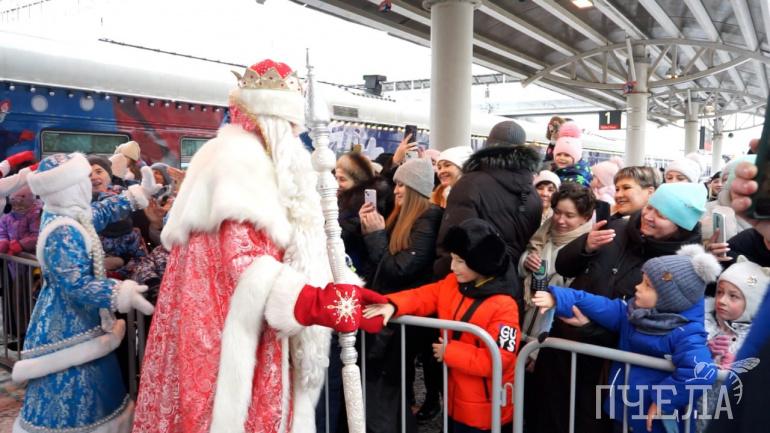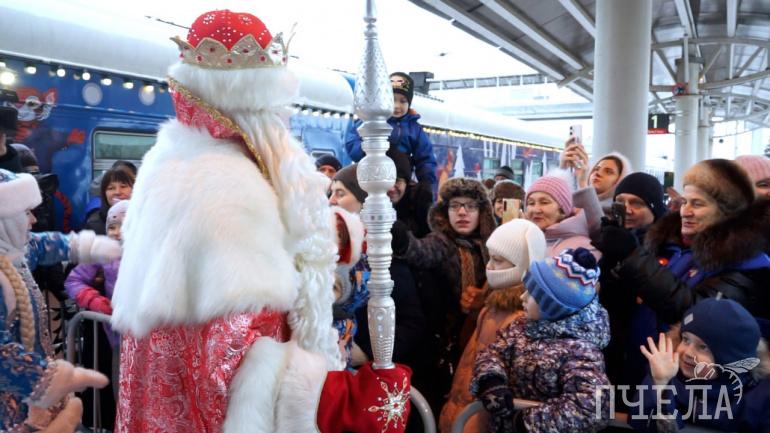 На челябинском железнодорожном вокзале встретили красочный поезд Деда Мороза. Посмотреть на яркое представление его команды собрались 12,6 тысячи взрослых и детей. Главный зимний волшебник рассказал им, почему приехал в гости из Великого Устюга.