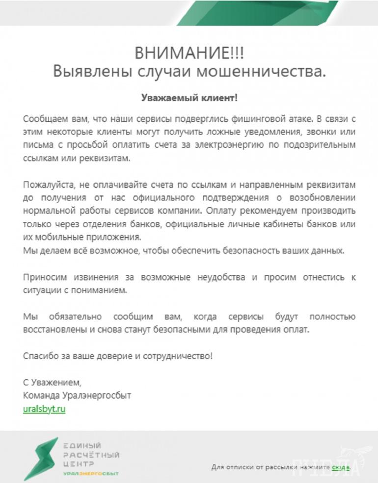 Из-за взлома сервисов компании «Уралэнергосбыт» личные кабинеты жителей Челябинской области оказались заблокированы. При этом компания предупредила южноуральцев, что они могут получить ложные уведомления, звонки или письма с просьбой оплатить электроэнергию по подозрительным ссылкам или реквизитам.