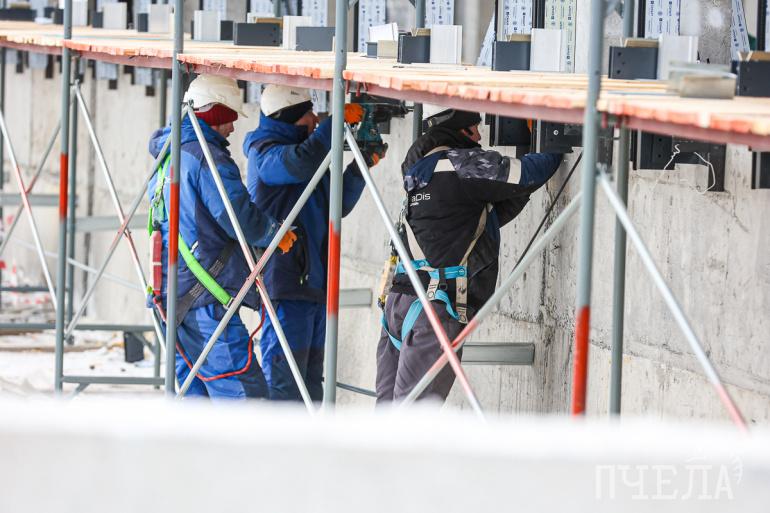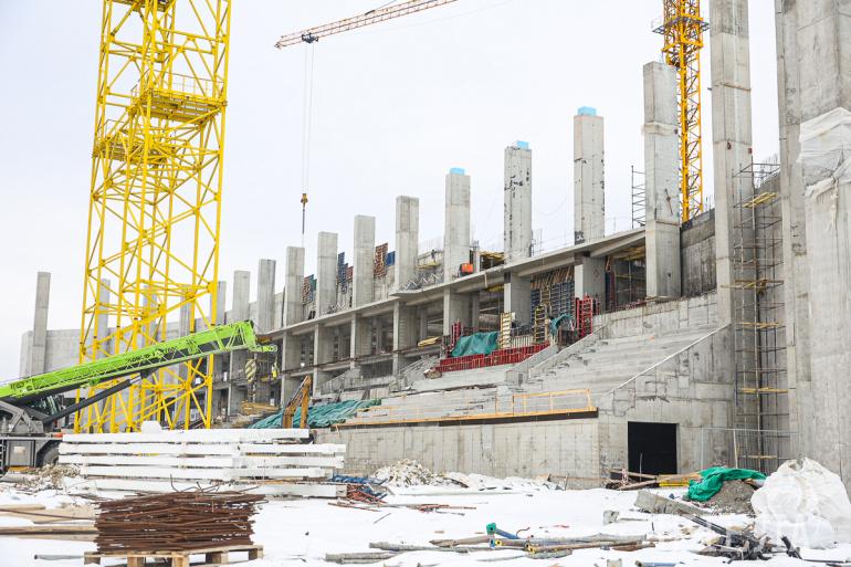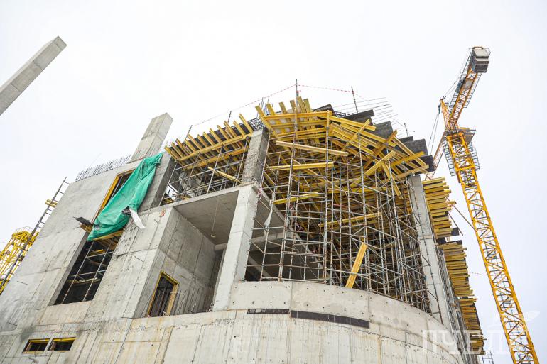 Строители провели инженерную подготовку, завезли порядка 300 тысяч кубов грунта, установили сваи, залили фундамент и завершают работы по монолитному железобетонному каркасу.