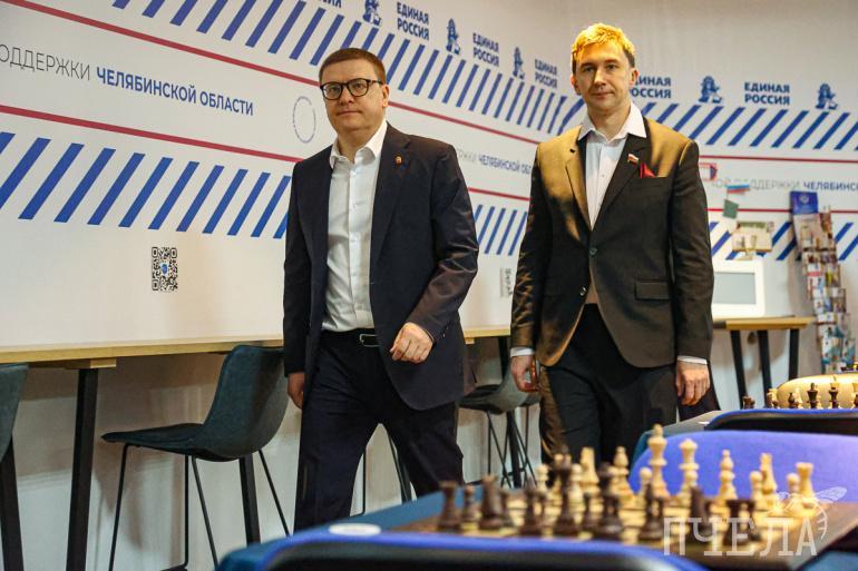 В церемонии открытия шахматного клуба приняли участие губернатор Челябинской области, секретарь регионального отделения «Единой России» Алексей Текслер и сенатор, чемпион мира по рапиду и блицу, гроссмейстер Сергей Карякин.