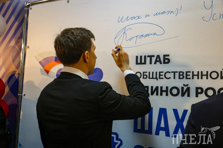 В завершение церемонии открытия губернатор и сенатор оставили на стенде послания. Теперь всех гостей клуба встречают две надписи: «Успехов во всём и всегда» от Алексея Текслера и «Шах и мат» от Сергея Карякина.
