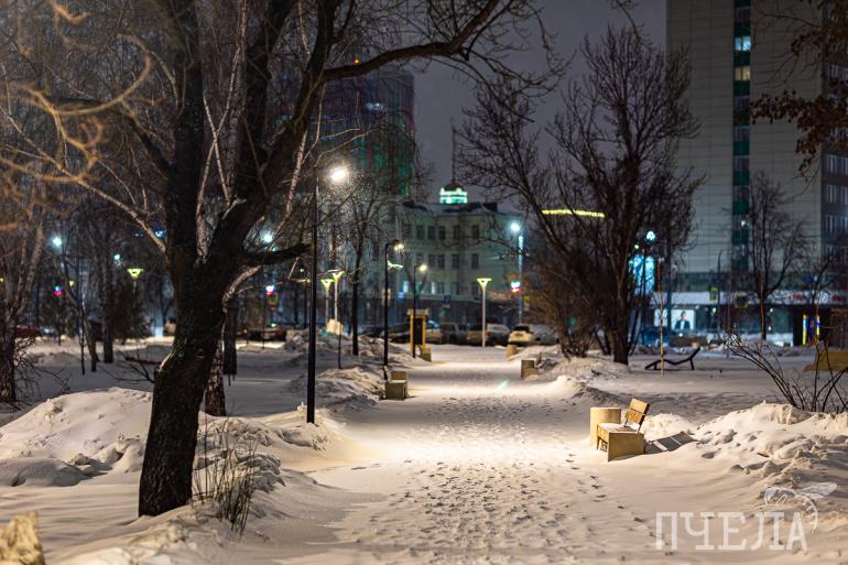 «Пчела» запечатлела заснеженный Челябинск в вечерних огнях