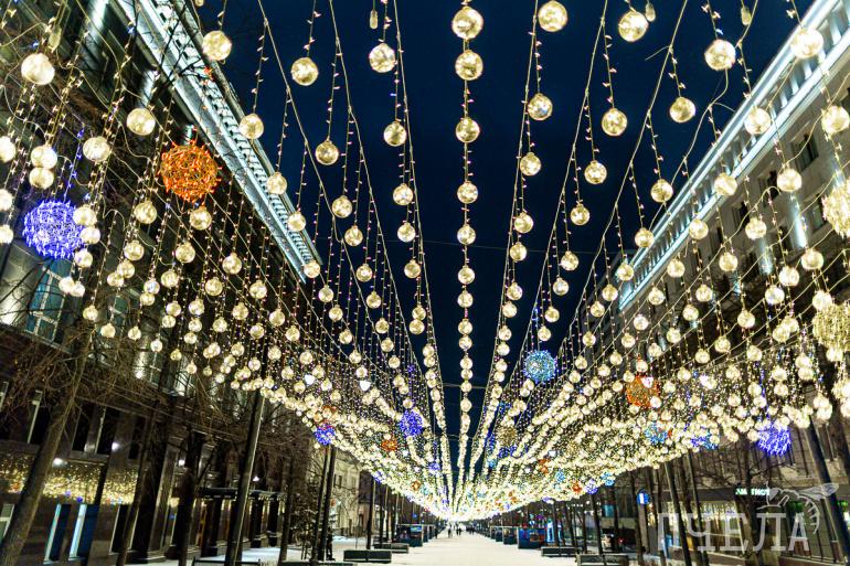 Разноцветные огни и иллюминация делают город особенным