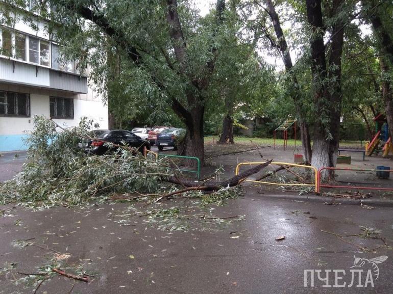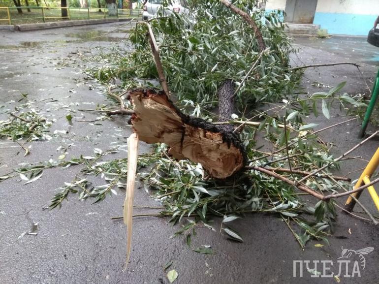 В одном из челябинских дворов на проспекте Победы в районе Теплотехнического института сильный ветер сломал дерево. По счастливой случайности под ним не было машин. Об этом в субботу, 31 августа, «Пчеле» сообщил очевидец.