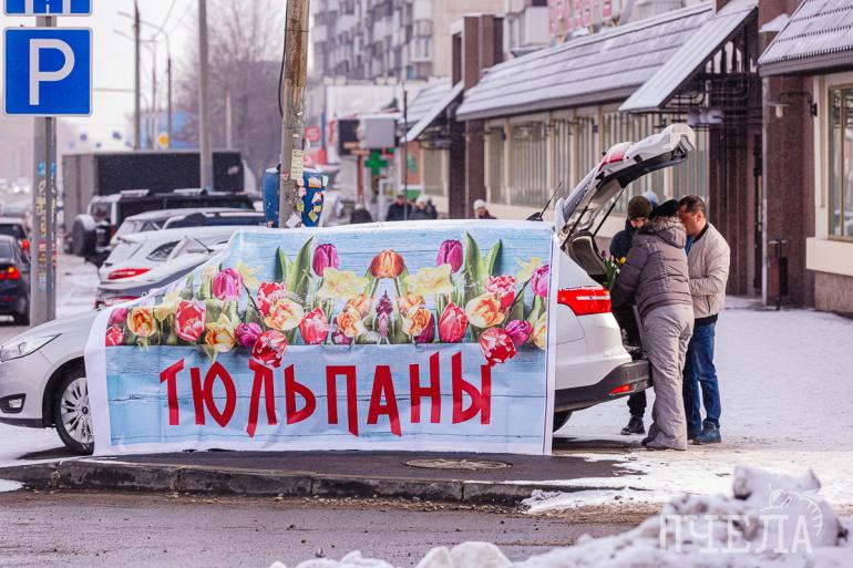 Тюльпаны, мимозы и немножко суеты: как выглядит Челябинск в преддверии 8 Марта
