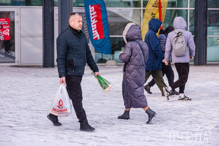 Накануне Международного женского дня Челябинск буквально осыпало цветами: кроме привычных цветочных магазинов на улицах появилось множество стихийных точек, где продаются букеты. А вместе с ними — игрушки, парфюмерия и другие подарки. Буйство красок и немножко мужской суеты запечатлел фотокорреспондент «Пчелы».