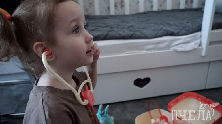 Часто играет в доктора с мамой и гуляет с собакой Мией