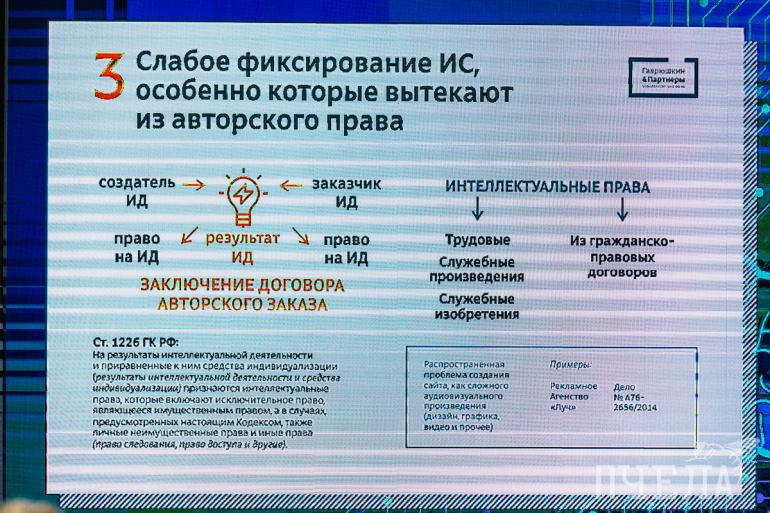 На семинаре, который прошёл при поддержке сайта Pchela.news и Штаба общественной поддержки Челябинской области, подробно разобрали то, как создаются и фиксируются объекты авторского права и как работать, чтобы не попадать на крупные штрафы. Поговорили о правилах цитирования, ведения социальных сетей и использовании фотографий, а также о том, как не нарушить чужие интеллектуальные права (спойлер, сделать это проще, чем кажется). А в завершении спикер ответил на многочисленные вопросы.