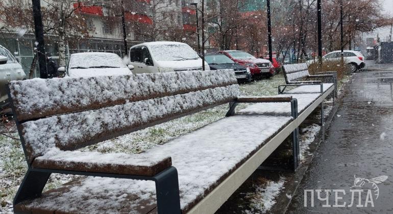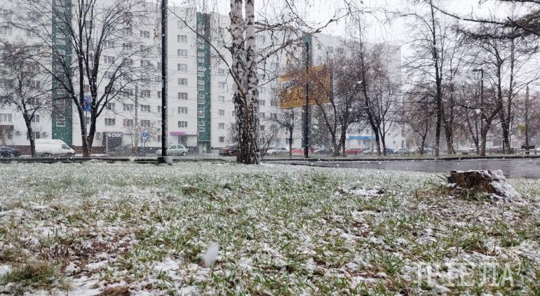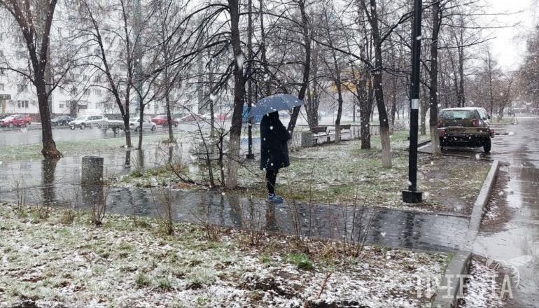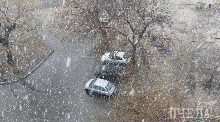 В Челябинске прошёл мощный и красивый апрельский снегопад