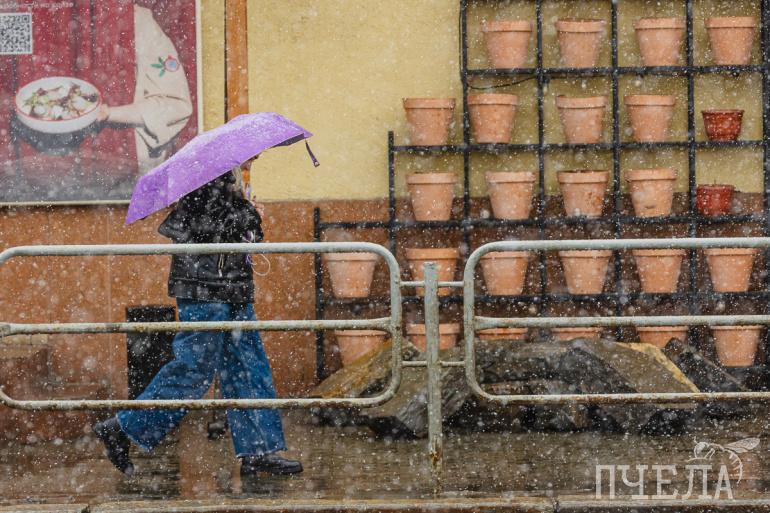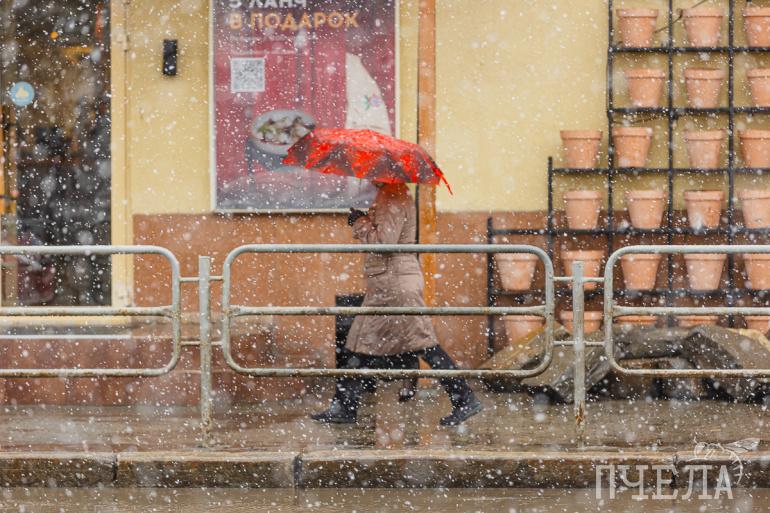 Прелесть апрельского снегопада в том, что зонты уже под рукой