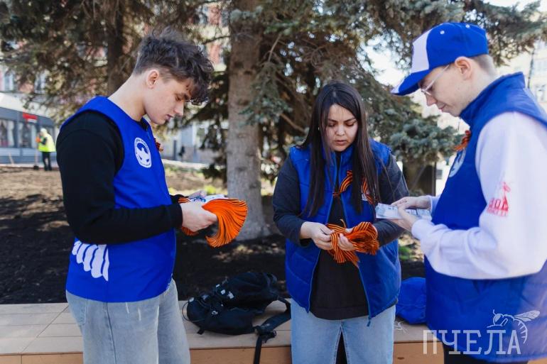 Акция «Георгиевская ленточка» началась в 14 часов в четверг, 24 апреля, на пешеходной части улицы Кирова. Волонтёры собрались у памятника «Добровольцам-танкистам». Символ победы в Великой Отечественной войне раздавали прохожим.